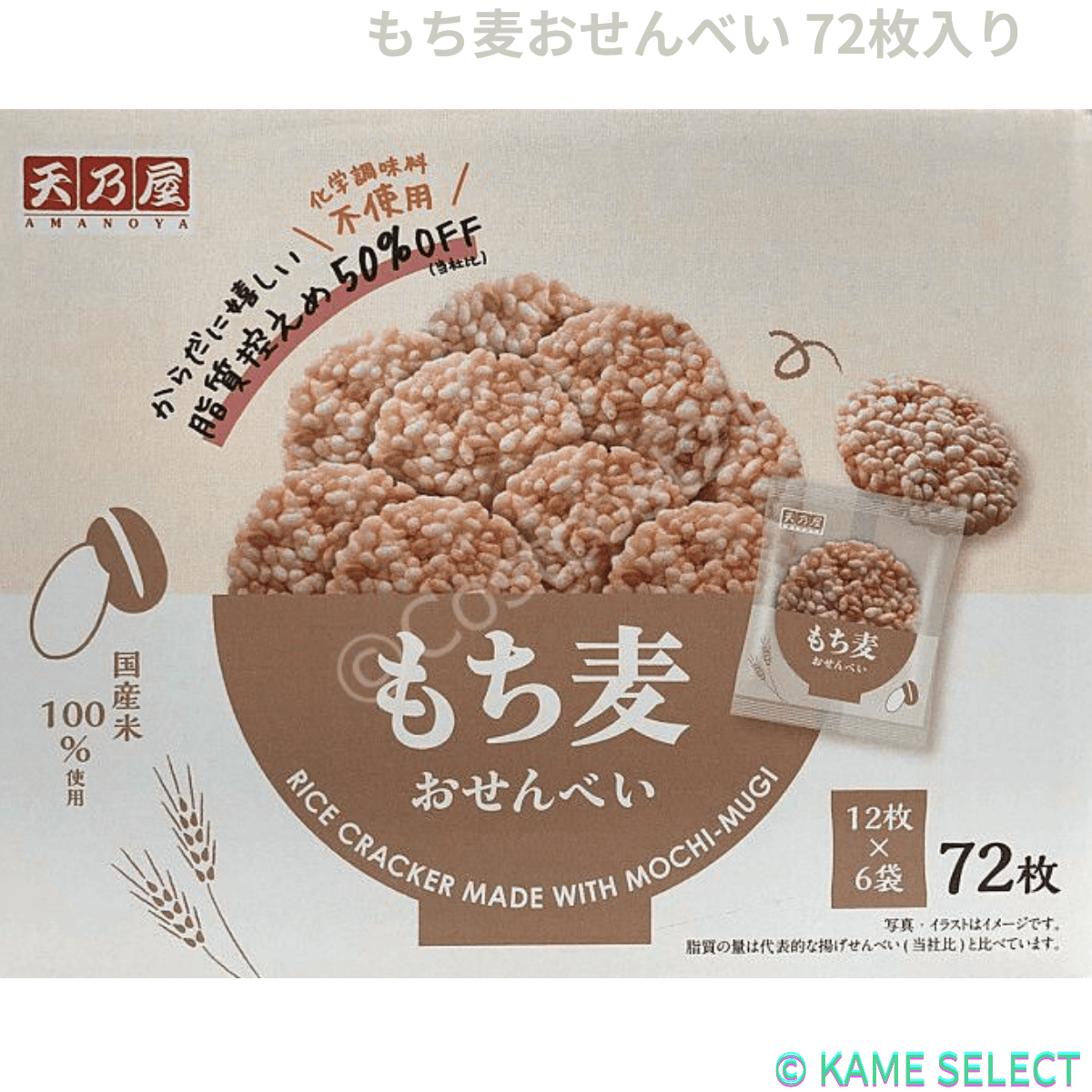 炊きたてのもち麦ご飯をそのままおせんべいにした、素材の味わいが楽しめる商品です。代表的な揚げせんべいと比べ、脂質は約50%OFF(天乃屋社比)でからだに嬉しいうま味調味料不使用商品です。1枚1枚個包装されておりますので、シェアしてお楽しみ頂けます。