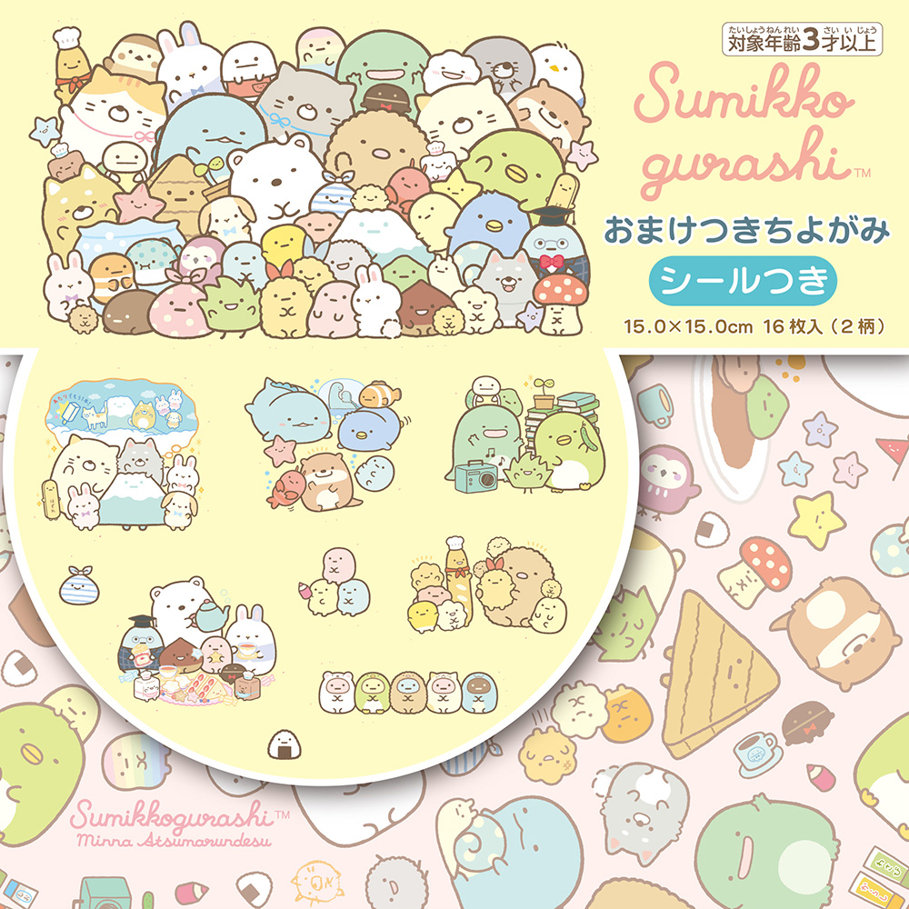 すみっコぐらし おまけつきちよがみ2柄(シール付千代紙) すみっこぐらし(TY-031906) ちよがみ15x15cm16枚(2柄) *絵柄はサンプル画像です。実際の絵柄と多少異なる場合がございます
