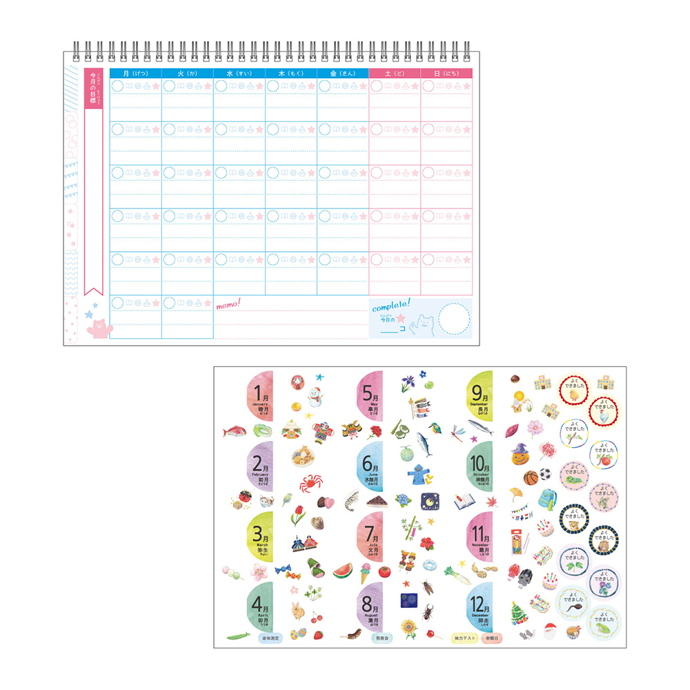 目標欄、よくできましたシール、賞状付で、やる気アップ!