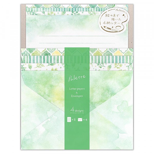 レターパレット リーフ レターパレット リーフ (NB-1270102) 絵の具で描いた様々なデザインが楽しい、4柄アソートのレター。 (洋形2号封筒) 便箋4柄アソート8枚 封筒4柄アソート4枚入 便箋:4サイズ入 ヨコ13行罫 縦210×横162mm(A5相当) 便箋:4サイズ入 縦195×横148mm 縦200×横148mm 縦205×横148mm 縦210×横148mm ※便箋は柄ごとにサイズが異なります。 4905260792459 **kw**新学期 新入学・入園 ギフト stationery 入学準備 入学祝い 入園祝い 2026 4柄アソートレターセット(封筒便箋セット) NB社(エヌビー社) コバルト グリーン キャラクターグッズ NB社(エヌビー社) レターセット **kw**