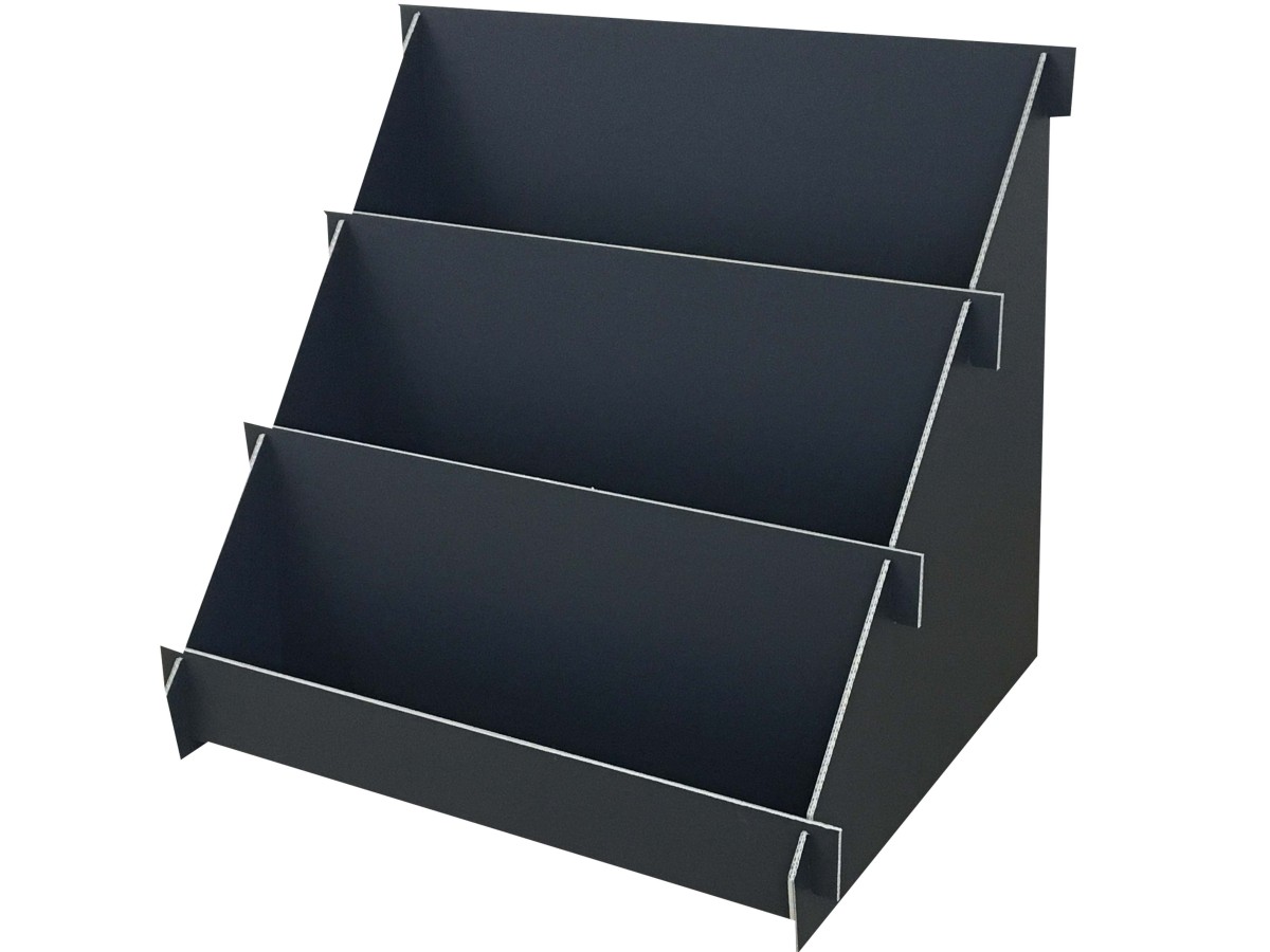 100%再生ダンボール ひな壇 陳列什器 組立式ディスプレイ スタンド 幅470mm マットブラック(ツヤ消しブラック) ダンボール (陳列棚 商品棚 販促展示などに)