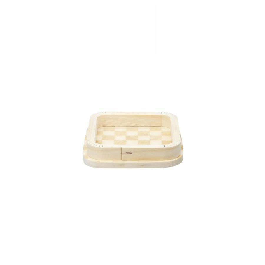 -商品名-折敷 2.5寸 市松模様-商品サイズ-幅8.5×奥行8.5×高さ2 cm-内寸-内寸:幅6.2×奥行6.2×高さ1cm-商品重量-24g-主素材-ひのき-カラー-ナチュラル-商品状態-完成品-商品説明-敷紙を敷いて米、塩をお供えします。柄が途切れることなく続いていることから、繁栄の意味が込められ子孫繁栄や事業の拡大など縁起物として人気のある模様です。