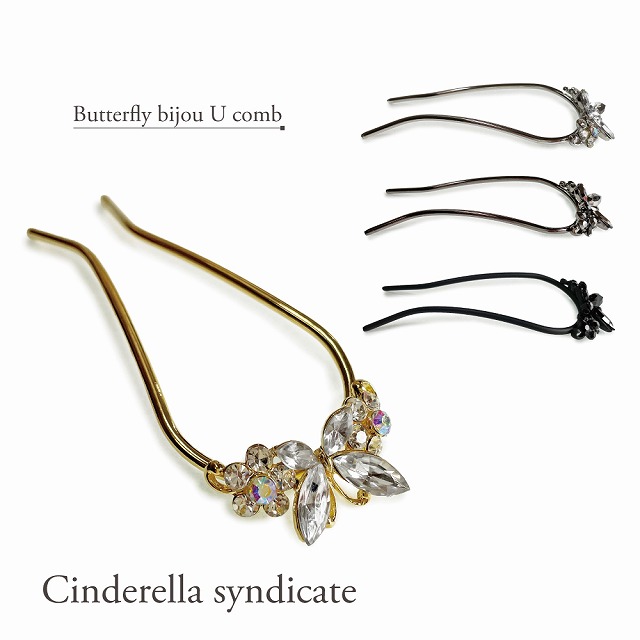 夜会巻きコーム Uスティック かんざし 結婚式 パーティー ブライダル スワロフスキー 蝶 180310 追跡可能 ネコポス 送料無料