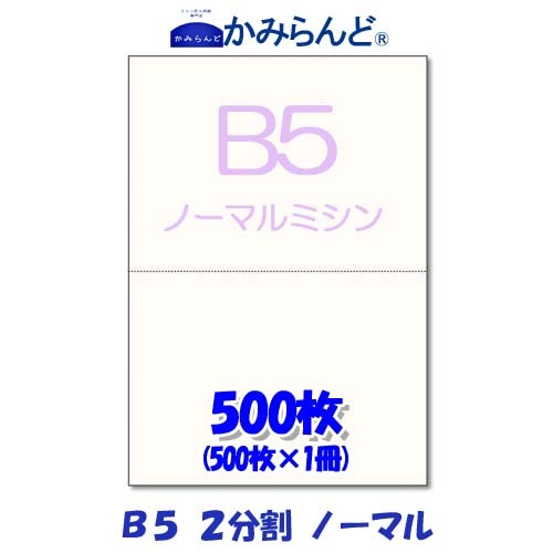 【B5】2分割 ノーマルミシン目入り用紙 500枚 プリンター帳票用紙 納品書 領収書 請求書 かみらんど