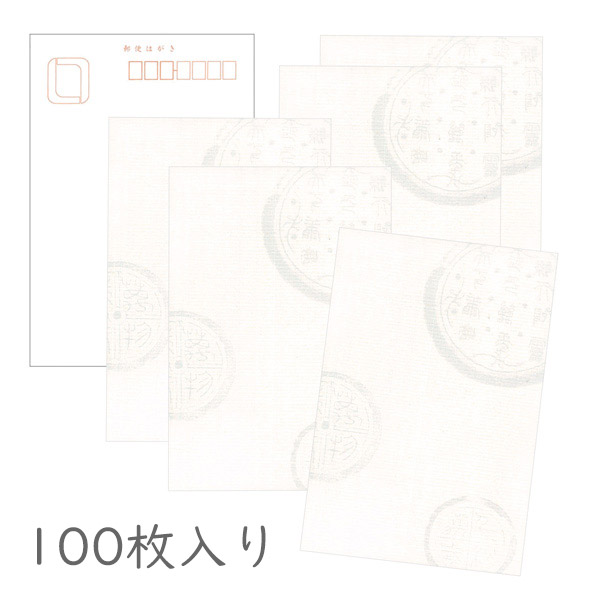 和紙はがき「光琳 その二十」100枚入りパック 白地に篆刻 かみもんオリジナル 越前 おしゃれ 平安王朝風 シンプル 作品 和風 和柄 レトロ 厚口 お礼報告 ポストカード ギフト 感謝 孫 プレゼント グリーティング 敬老 あす楽