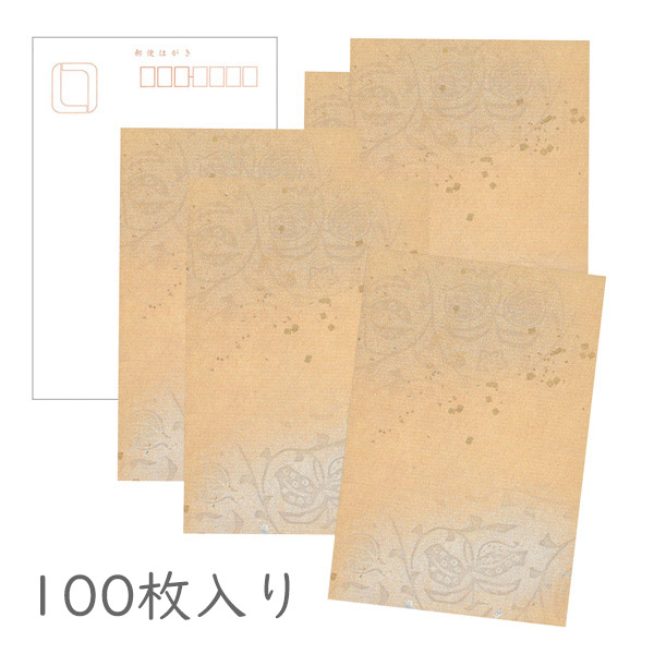 和紙はがき「光琳 その六」100枚入りパック かみもんオリジナル ベージュの柄ボカシ砂子切箔 ハガキ 葉書 おしゃれ 作品 上品 優雅 ステキ 和風 和柄 レトロ 厚口 お礼 越前報告 ポストカード ギフト 感謝 孫 敬老 あす楽