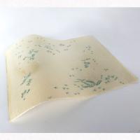 白色の和紙に花鳥や折枝の柄を型打ちしたかな料紙です。 全体に金銀の砂子をやわらかく振っており、豪華でありながらも落ち着いた雰囲気で作品を引き立たせます。 柄は淡い緑色で染められており、美しく全体を彩ります。