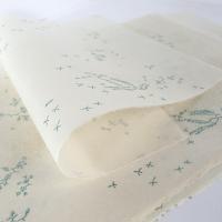白色の和紙に花鳥や折枝の柄を型打ちしたかな料紙です。