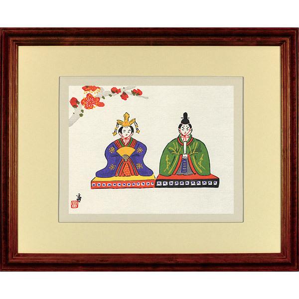 徳力富吉郎 E-27 木版画 額縁付き「雛」切手版 メーカー取寄せ品 1枚入り 14×18cm