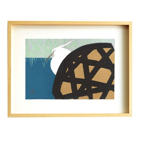 芸艸堂 木版画 神坂雪佳「No.8 白鷺(額装)」神坂雪佳用額付き メーカー取寄せ品