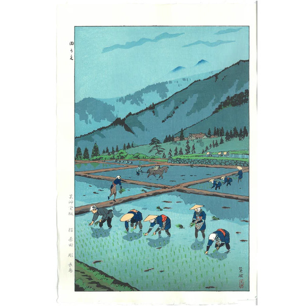 明治31年東京・浅草生れ。14歳で鏑木清方に日本画を師事、巽画会、郷土会で活動を続ける。芸艸堂版は昭和20年頃より版行をはじめ、100点近くの作品を発表。日本各地を題材とした作品は近年再評価されています。今回掲載する作品は現在も再版している作品です。(当時摺られた版画(初摺り)は海外などで高値で売買されています)