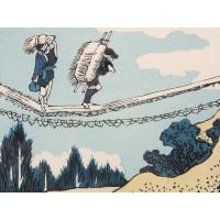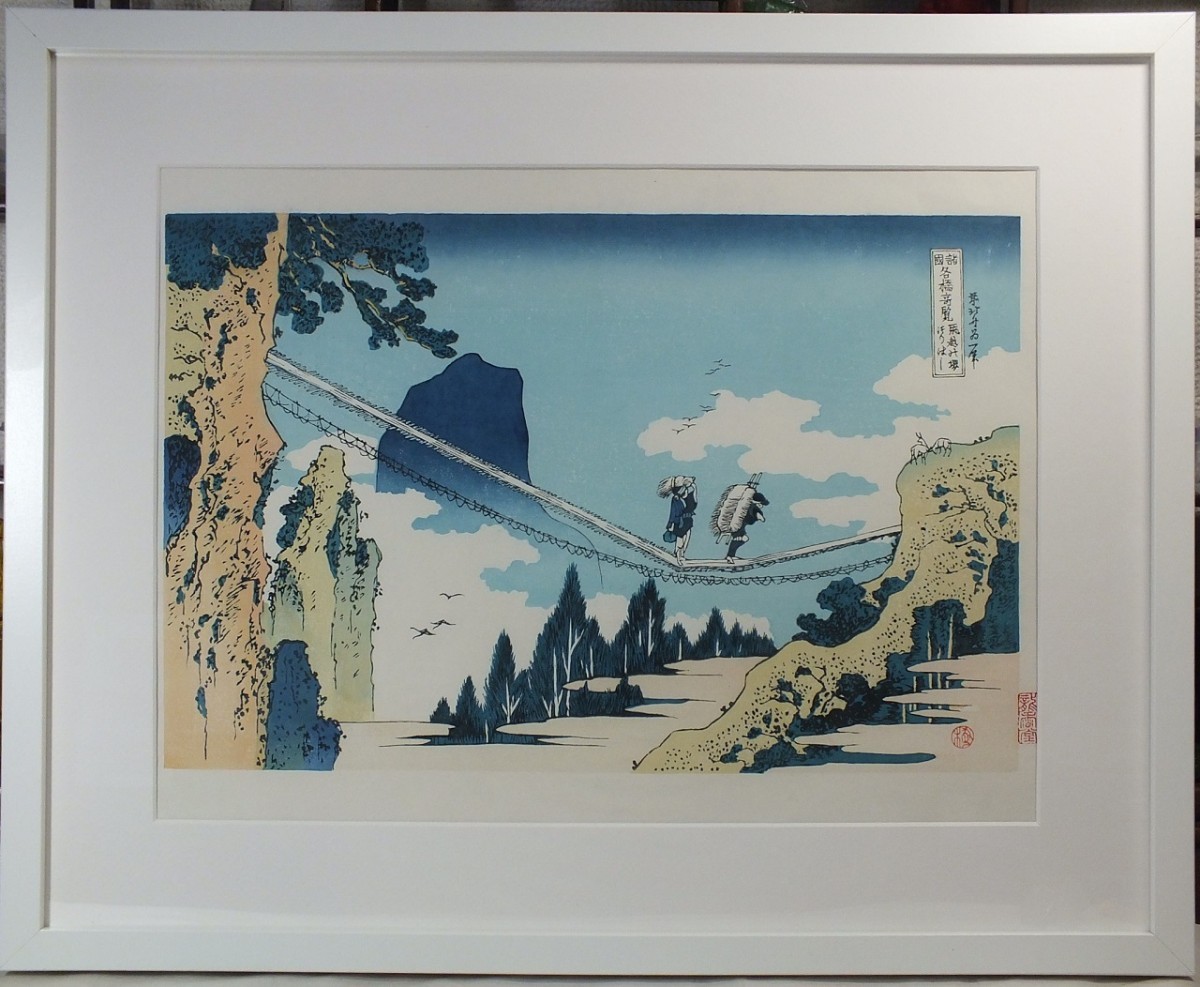 *復刻木版浮世絵 葛飾北斎『諸国名橋奇覧 飛越の堺つりはし』額装済