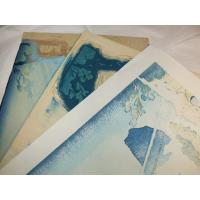 額装サイズ:525×425×厚35mm 絵サイズ(約):378×247mm 重さ:約1350g 技法(種別):木版画 紙質:和紙 ●世界的芸術家、葛飾北斎。その『諸国名橋奇覧』シリーズ中の『飛越の堺』です。龍香堂と親交の有る版画研究室から買い取りました。北斎の描いた見事な橋梁を、手摺木版で忠実に復刻した作品です。◎こちらは額に入れた状態なので、すぐに飾ることが出来ます。※画像4は版木の一部と裏面の画像です。版画用染料が裏写りしているのは、印刷ではないことの証しです。●「諸国名橋奇覧(しょこくめいきょうきらん)」:「富嶽三十六景」「千絵の海」「諸国滝廻り」等と同時期頃に発表された全11図の名所絵揃。江戸時代後期には、絵入りの名所案内、現在のガイドブックにあたる「名所図会」の刊行が盛んであった。当シリーズは全国の珍しい橋をモチーフに描かれており、殆どは実在する橋であるが、伝説上の橋も含まれている。【作品解説】「飛越の堺つりはし」(ひえつのさかいつりはし):「飛越の堺」とは現在の飛騨(岐阜県)と越中(富山県)の山間を指す。そんな高所に架かる簡素な吊り橋を、夫婦であろうか二人連れが渡っている。重さで弓なりに撓む橋には手摺も無く、下界の谷間は雲に隠れて見えない。まるで曲芸師を見る様な緊張感の中、空には鳥が舞い、崖には鹿が遊んでいる。大胆な命懸けの構図に対し、余りにも穏やか過ぎる景色が誠に見事である。実際にこの作は、地名の指定は有るものの橋は特定出来ず、北斎は伝承を基に想像で描いたと言われている。-----☆こちらの商品は、ゆうパックでの発送になります。