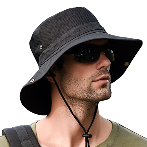 [KELEVO] サファリハット メンズ メッシュ通気構造 折りたたみ UVカット 帽子 プレゼント つば広 日焼け 速乾性 軽量 防風 あごひも 2WAY おしゃれ 釣り 登山 ハ