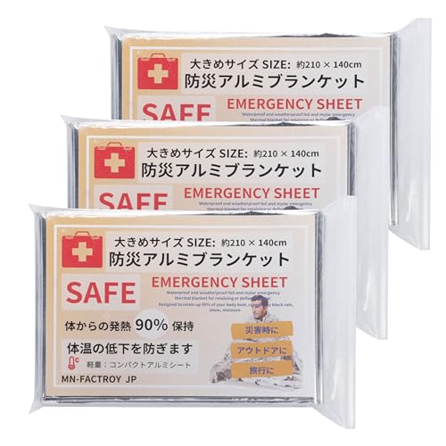 MN-FACTORY JP 日本語説明書付き:大き目 210*140* 保温シート サバイバルシート アルミシート アルミブランケット 防災 防災グッズ 緊急 災害 アウトドア 旅行