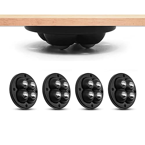 4パック家電用剥離粘着回転ホイール、360度回転自己粘着キャスターホイール、小型家電、ゴミ箱、収納ボックス用ステンレス鋼回転ユニバーサルホイール ブラック