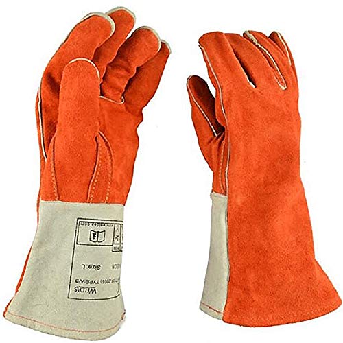 [weldas] 溶接手袋 ロング 耐熱 5本指 溶接グローブ 柔らかい 牛床革 レザー 裏綿付き 1双