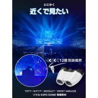 * どの席でも満足に推しを見れる コンサートで少しでも近くから尊い推しを眺めたい。そんな願いを叶える双眼鏡が登場 アリーナやドームなどの大きい会場で手持ちの双眼鏡で手ブレを気にせず見れる倍率、それが12倍です。分かりやすく言うと、100メートル先の推しを10メートルの距離から見ている感覚です。10メートル先だと88センチの距離になります 」