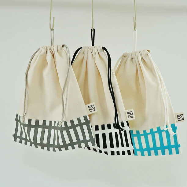 北欧格子×無地のループ付き巾着袋(給食袋)2cm刻みでサイズが選べる!3L(26cm×22cm) Made in Japan