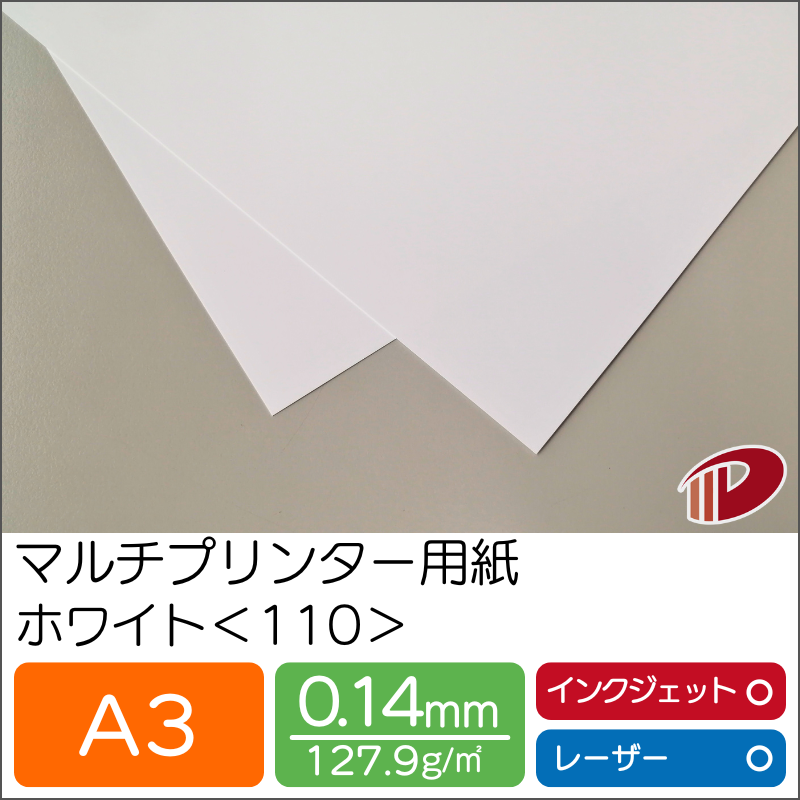 マルチプリンター用紙ホワイト<110>A3/100枚 印刷用紙 コピー用紙 プリンター用紙 白無地 高白色 非塗工