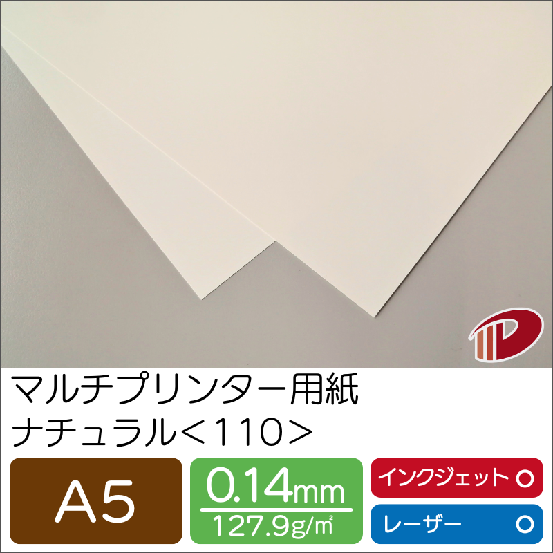 マルチプリンター用紙ナチュラル<110>A5/100枚 印刷用紙 コピー用紙 プリンター用紙 無地 ナチュラルカラー 非塗工
