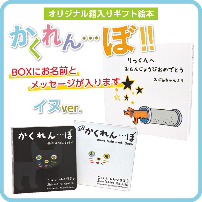 絵本 ギフト かくれんぼ 2冊セット BOX絵柄:いぬ 動物 探し 名前入り 名入れ メッセージ入り 小西 慎一郎