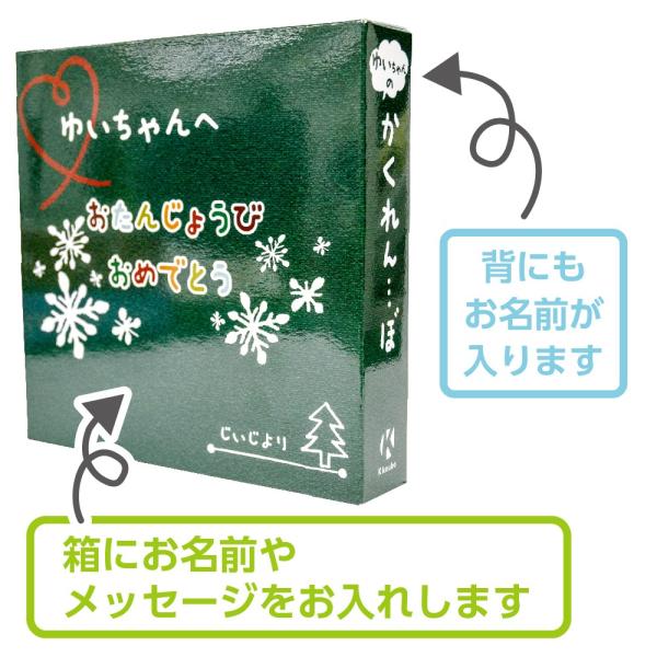 しかも、箱の表紙にはメッセージ、背にはお名前を入れられます。
