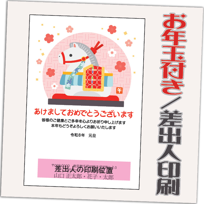 お年玉付き年賀はがきに印刷! はがき代・送料・消費税すべて込みの価格です! ゆうパケットにて発送【年賀状発売日(10/30)より順次発送】