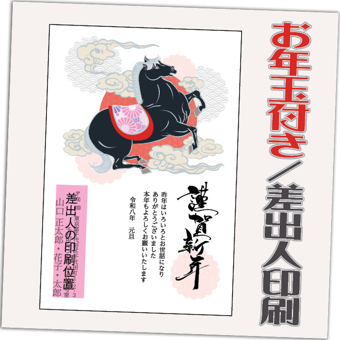 お年玉付き年賀はがきに印刷! はがき代・送料・消費税すべて込みの価格です! ゆうパケットにて発送【年賀状発売日(10/30)より順次発送】