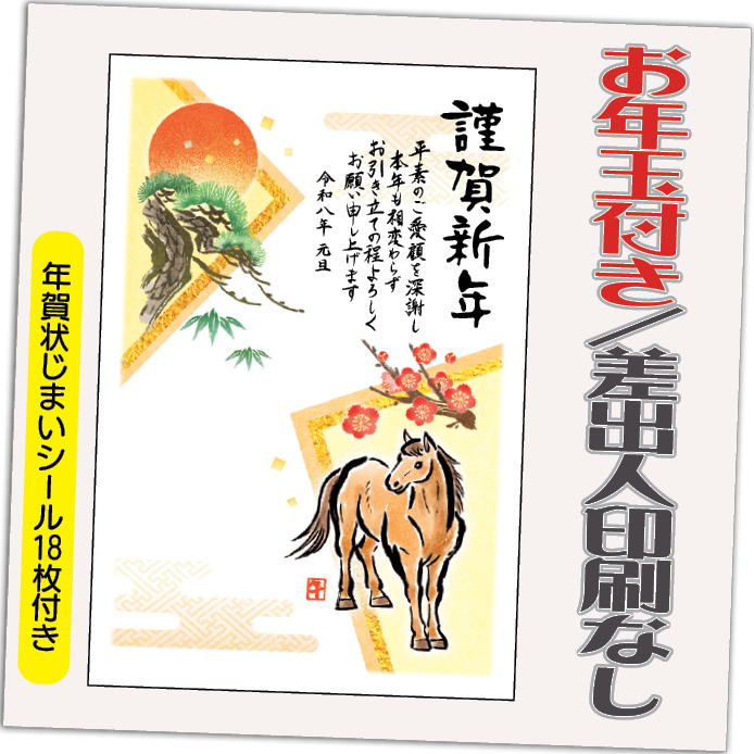 年賀状 年賀はがき 20枚 お年玉付き 年賀状じまいシール付 2026年 差出人なし(デザイン:HA009) うま 馬 午年 かわいい イラスト