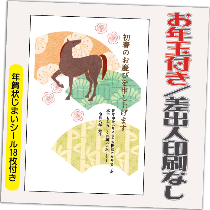 年賀状 年賀はがき 20枚 お年玉付き 年賀状じまいシール付 2026年 差出人なし(デザイン:HA014) うま 馬 午年 かわいい イラスト