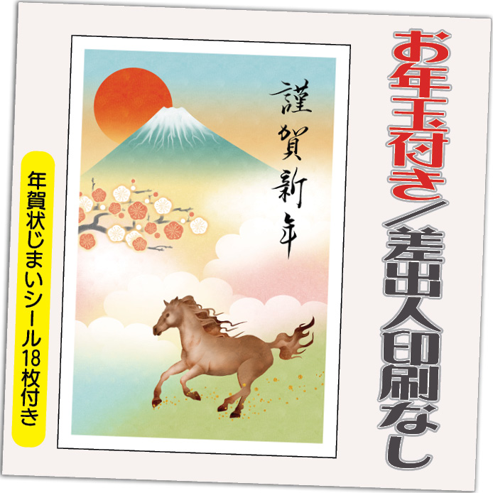 年賀状 年賀はがき 4枚 お年玉付き 年賀状じまいシール付 2026年 差出人なし(デザイン:B0107) うま 馬 午年 かわいい イラスト