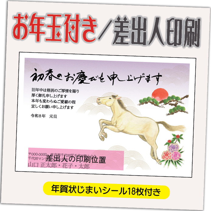 お年玉付き年賀はがきに印刷! はがき代・送料・消費税すべて込みの価格です! メール便にて発送 ※土日祝は出荷しておりません。