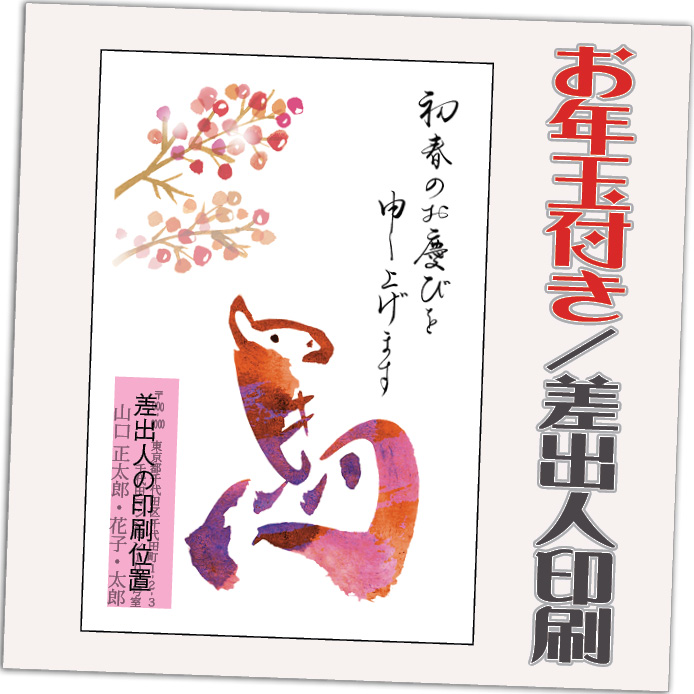 お年玉付き年賀はがきに印刷! はがき代・送料・消費税すべて込みの価格です! ゆうパケットにて発送【年賀状発売日(10/30)より順次発送】