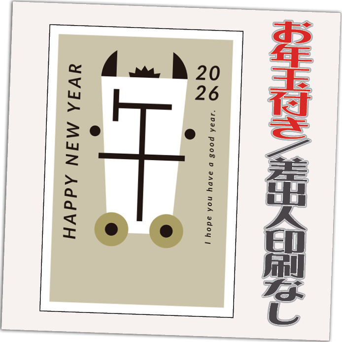 お年玉付き年賀はがきに印刷! はがき代・送料・消費税すべて込みの価格です! ゆうパケットにて発送【年賀状発売日(10/30)より順次発送】