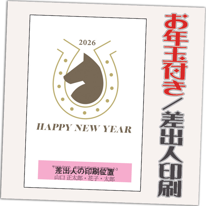 お年玉付き年賀はがきに印刷! はがき代・送料・消費税すべて込みの価格です! ゆうパケットにて発送【年賀状発売日(10/30)より順次発送】