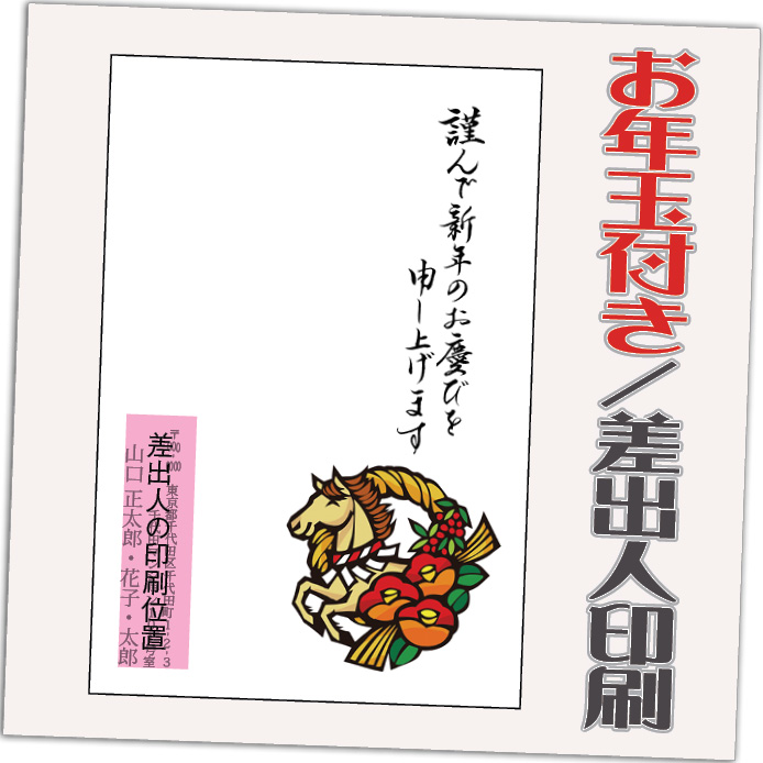 お年玉付き年賀はがきに印刷! はがき代・送料・消費税すべて込みの価格です! ゆうパケットにて発送【年賀状発売日(10/30)より順次発送】