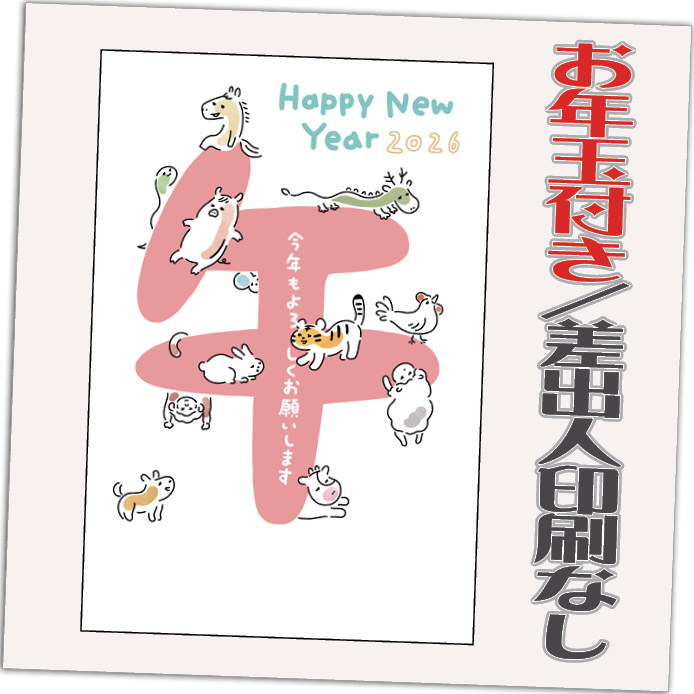 お年玉付き年賀はがきに印刷! はがき代・送料・消費税すべて込みの価格です! ゆうパケットにて発送【年賀状発売日(10/30)より順次発送】