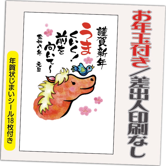 年賀状 年賀はがき 12枚 お年玉付き 年賀状じまいシール付 2026年 差出人なし(デザイン:B0545) うま 馬 午年 かわいい イラスト 10枚+2枚