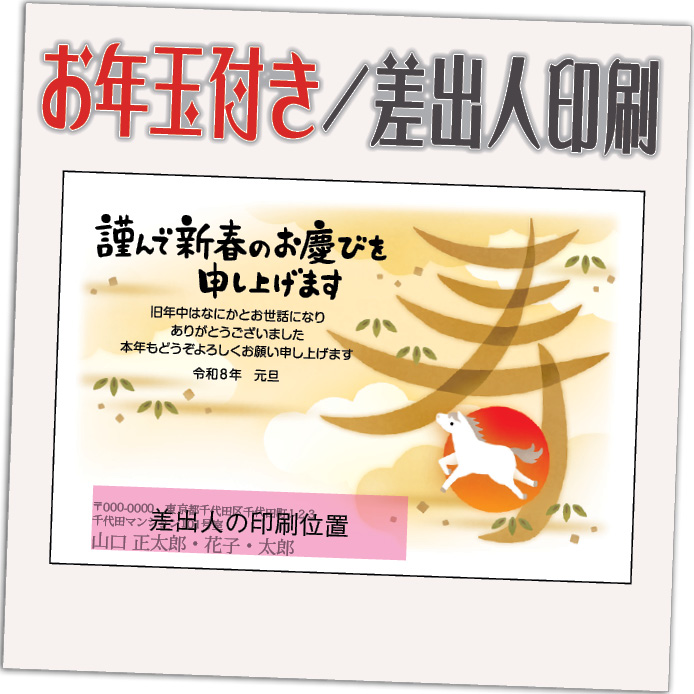 お年玉付き年賀はがきに印刷! はがき代・送料・消費税すべて込みの価格です! ゆうパケットにて発送【年賀状発売日(10/30)より順次発送】