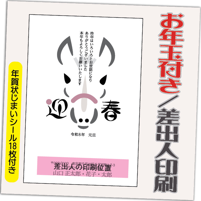 お年玉付き年賀に印刷! 格安! 差出人印刷ありで、ご自分で宛先印刷するだけ。