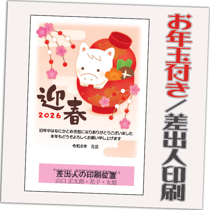 お年玉付き年賀はがきに印刷! はがき代・送料・消費税すべて込みの価格です! ゆうパケットにて発送【年賀状発売日(10/30)より順次発送】