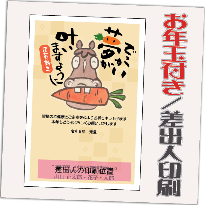 お年玉付き年賀はがきに印刷! はがき代・送料・消費税すべて込みの価格です! ゆうパケットにて発送【年賀状発売日(10/30)より順次発送】