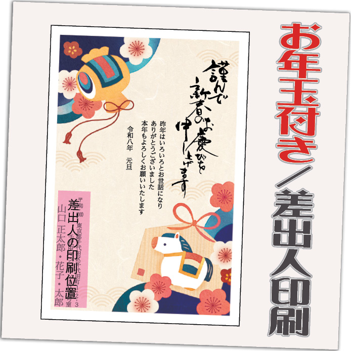 お年玉付き年賀はがきに印刷! はがき代・送料・消費税すべて込みの価格です! ゆうパケットにて発送【年賀状発売日(10/30)より順次発送】