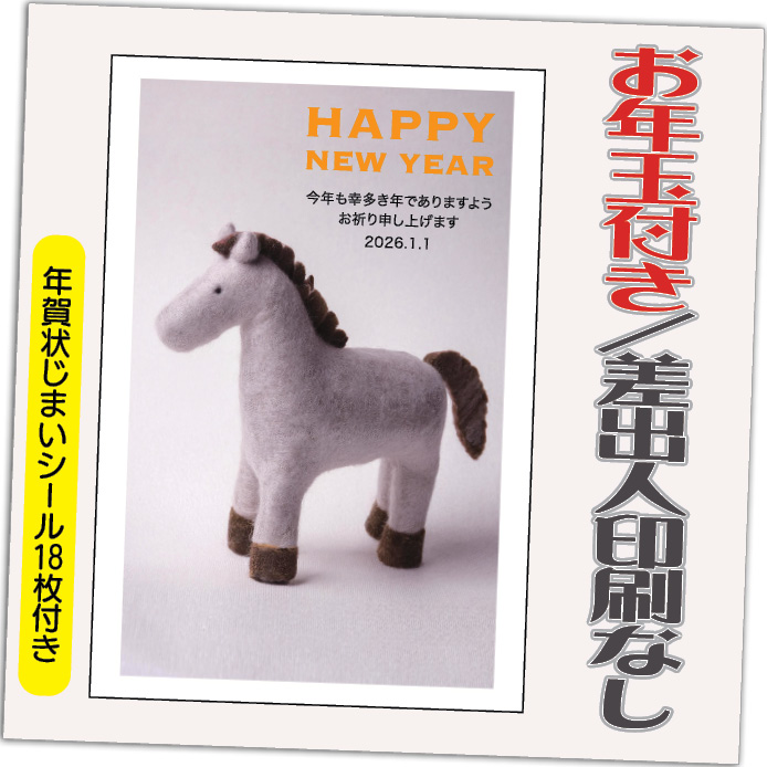 年賀状 年賀はがき 12枚 お年玉付き 年賀状じまいシール付 2026年 差出人なし(デザイン:HA096) うま 馬 午年 かわいい イラスト 10枚+2枚