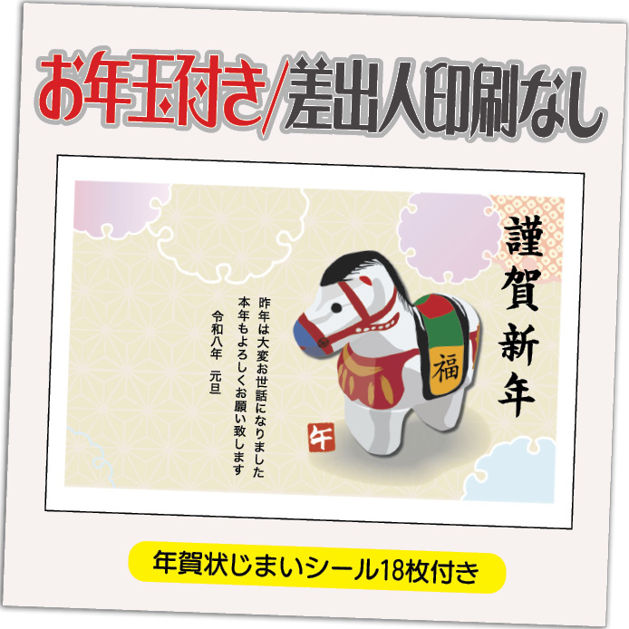 年賀状 年賀はがき 12枚 お年玉付き 年賀状じまいシール付 2026年 差出人なし(デザイン:HA152) うま 馬 午年 かわいい イラスト 10枚+2枚