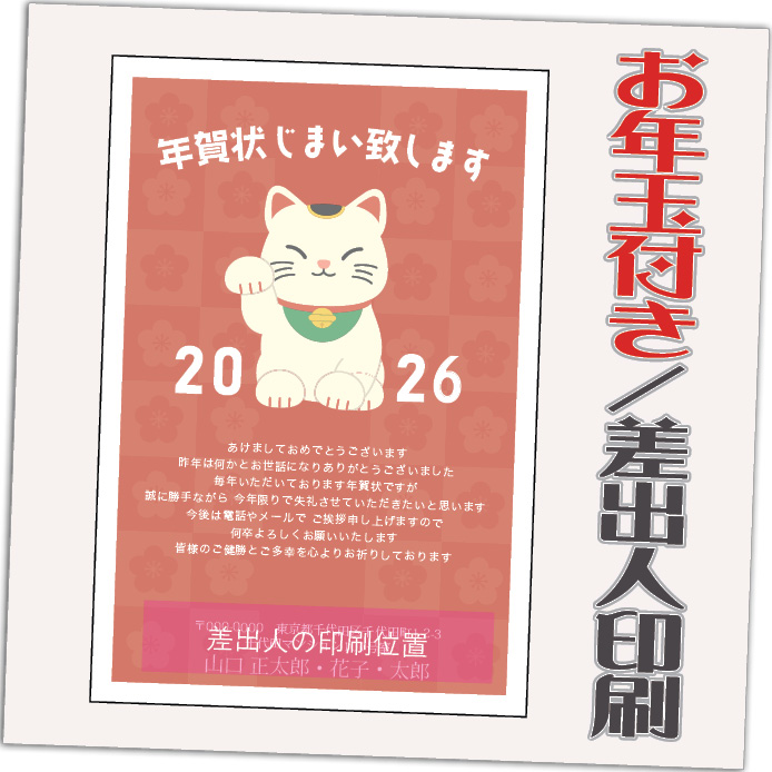 お年玉付き年賀はがきに印刷! はがき代・送料・消費税すべて込みの価格です! メール便にて発送 ※土日祝は出荷しておりません。