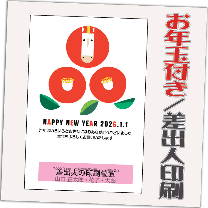 お年玉付き年賀はがきに印刷! はがき代・送料・消費税すべて込みの価格です! ゆうパケットにて発送【年賀状発売日(10/30)より順次発送】