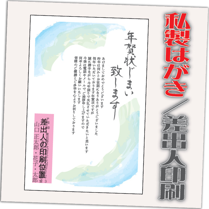 私製はがきに印刷! 格安! 差出人印刷ありで、ご自分で宛先印刷するだけ。