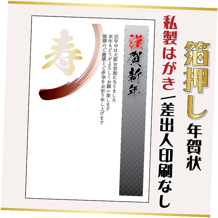 挨拶文の印刷があるので相手先さまの住所をプリンターで印刷したり、書いたりするだけで、手早くすぐに投函できる箔押し年賀状です。